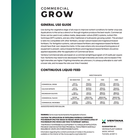Ventana Plant Science’s Commercial Nutrient Line is precisely tailored for professional growers seeking premium, eco-friendly nutrient solutions. Our scientifically-formulated collection includes base nutrients, bloom enhancers, kelp, amino acids, magnesium sulfate, silicon supplements, beneficial microbes, and reliable pH adjusters (pH Up and pH Down + Line Cleaner). Ideal for commercial hydroponic systems, greenhouse operations, and large-scale farming, this nutrient line ensures maximum yield, robust plant growth, and superior crop quality.
